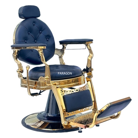 كرسي حلاقة نسائي أسود وذهبي هيدروليكي من الجلد، كرسي حلاقة متين يتحمل وزن 700 رطل للرجال، كراسي حلاقة صينية لصالونات الحلاقة